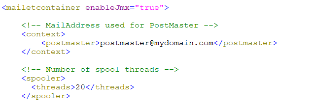 <smtpserver enabled="true"> 해당 값이 true 일 경우 SMTP 사용 , false 사용중지 (기본값 true)