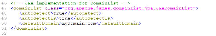 /conf/domainlist.xml 파일을 열면 위에 해당하는 부분을 찾아 defaultDomain 에 사용할 도메인을 적어주면 된다.